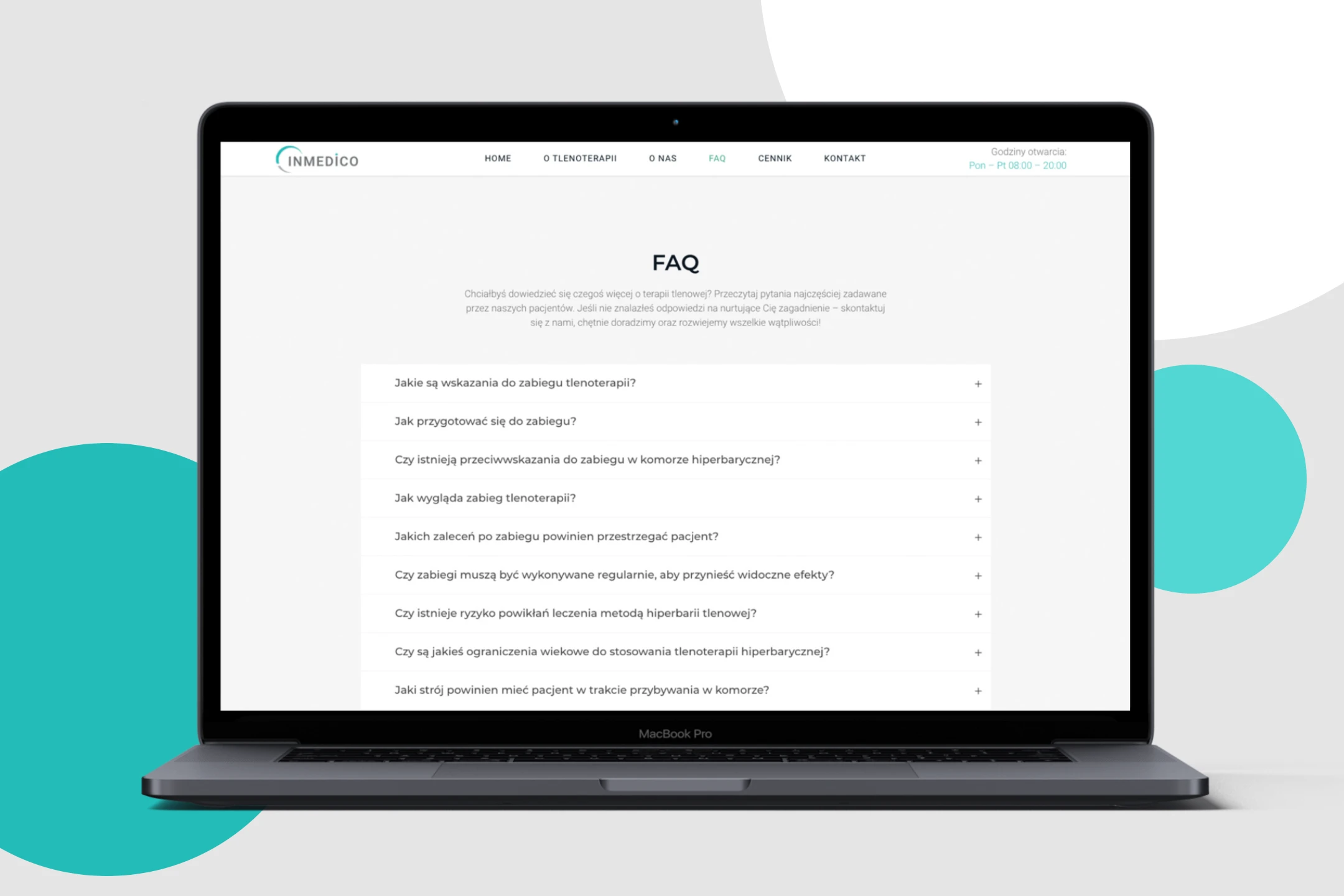 Jak przebiegła nasza kolejna już współpraca z Inmedico? Bardzo pomyślnie, a w jej efekcie powstał przejrzysty Landing Page oferujący niezwykle popularny w ostatnim czasie zabieg tlenoterapii. Strona one-page, którą przygotowaliśmy została rozbudowana o opcjonalne moduły, które sprawiły, że jest ona nie tylko wyjątkowo wygodna w użytkowaniu, ale również estetyczna i przyciągająca wzrok. Nowoczesność, prostota oraz łatwy przekaz informacji to hasła, którymi kierowaliśmy się podczas realizacji tego projektu. Zadbaliśmy również o chwytliwe teksty i spójny przekaz!